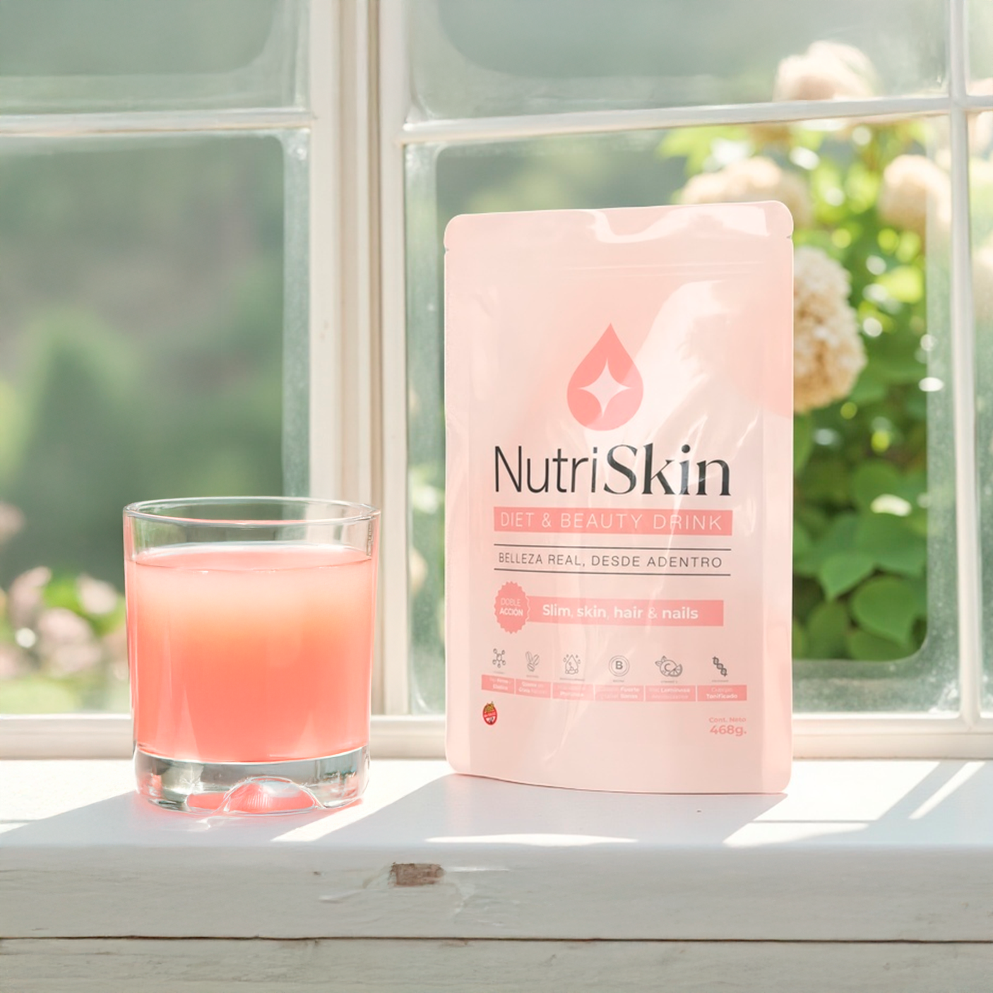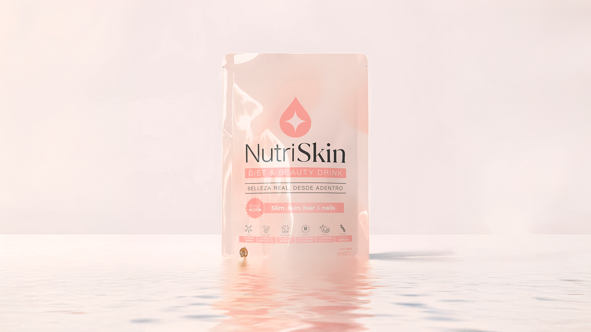 NutriSkin es un suplemento bebible con ingredientes clínicamente respaldados para cuidar tu piel, tu cabello y tu cuerpo desde la raíz. Sin pasos extra. Sin complicaciones.